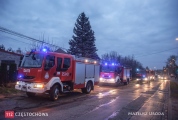 Jako następne na miejsce zdarzenia dotarły zastępy z JRG3 oraz JRG CS PSP. Natychmiast przystąpiono do akcji gaśniczej. Podano dwa prądy wody – z linii gaśniczej 75 oraz Szybkiego Natarcia z pianą. Drugim zadaniem strażaków było zabezpieczenie miejsca zdarzenia. Jak poinformował nas dowódca akcji prawdopodobną przyczyną pożaru był kawałek materiału który został wrzucony do pieca i z niego wypadł. Działania zostały zakończone o godz. 17. W wyniku pożaru jedna osoba doznała niewielkich poparzeń. Jej życiu i zdrowiu nic nie zagraża.