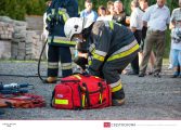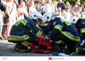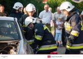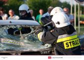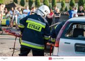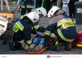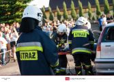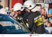 Po dojeździe zastępu na miejsce pozorowanego wypadku przystąpiono do zabezpieczenia miejsca zdarzenia oraz zablokowania pojazdu za pomocą klinów. Następnie wykonano dostęp do poszkodowanego za pomocą nożyco – rozpieraka. Strażacy przenieśli osobę poszkodowaną na deskę ortopedyczną i po ewakuowaniu jej z pojazdu przystąpili do udzielania pierwszej pomocy. W pokazach uczestniczył zastęp 359[S]48 – GBA 4,5/32 – Mercedes Benz Atego 1530 AF/Bocar.