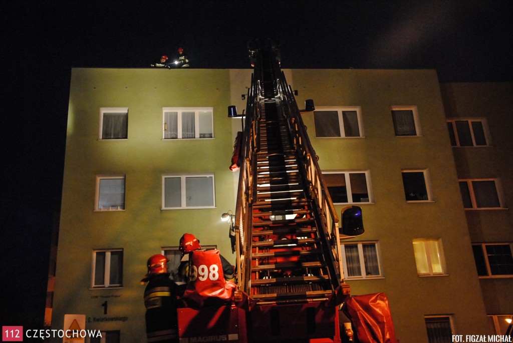 W dniu dzisiejszym (31.03.15) po godz. 19:30 do SKKM w Częstochowie wpłynęło zgłoszenie o zerwanej części dachu, która zwisała z jednego z bloków przy ul. Kwiatkowskiego w Częstochowie. Na miejsce przedysponowano zastęp 352[S]22, który zakończył działania przy ul. Wodzickiego.