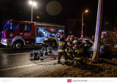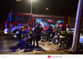 W wyniku uderzenia w słup oświetleniowy poważnych obrażeń doznał kierowca pojazdu. Zarówno on jak i jeden z pasażerów nie byli w stanie samodzielnie opuścić wraku.