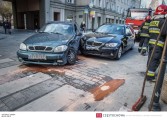 Doszło do zderzenia dwóch samochodów osobowych. Jedna osoba została przebadana przez zespół PR. Strażacy zneutralizowlai płyny eksploatacyjne rozlane na jezdnię oraz zabezpieczyli miejsce zdarzenia. Przyczyną wypadku było prawdopodobnie wymuszenie pierwszeństwa przez jeden z pojazdów. Działania zakończono ok. godz 14:30.